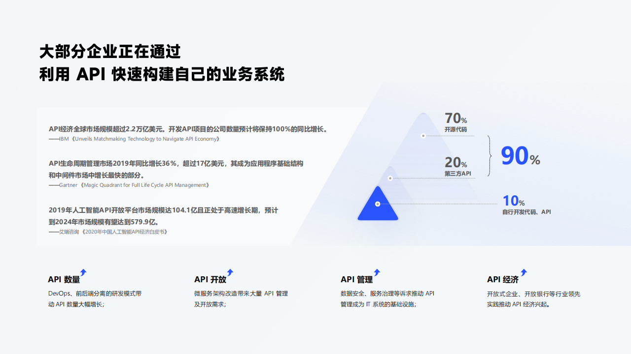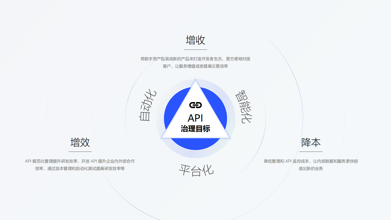 打造一站式、智能化的API全生命周期解决方案,为企业用户提供完善的API规范化治理、API研发流程优化、API性能和安全保障、API数据服务开放及交易等创新服务。